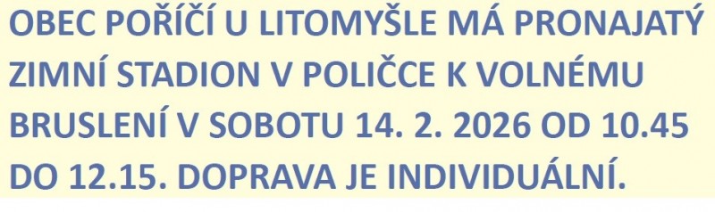 Obecní úřad v Poříčí u Litomyšle oznamuje, že středa 17. 12. 2025 je poslední úřední den v tomto roce, kdy bude otevřeno pro veřejnost. Od 22. 12. do 31. 12. 2025  bude zavřeno.