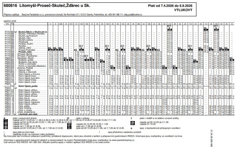 Z důvodu uzavírky silnice v Jiříkově u Dolního Újezdu, která začne dne 7. 4. 2026, dojde u některých spojů k časovým úpravám v souvislosti s vedením objízdné trasy. Tyto změny se mohou v některých případech dotknout i dalších spojů z turnusového hlediska nasazení vozidel.